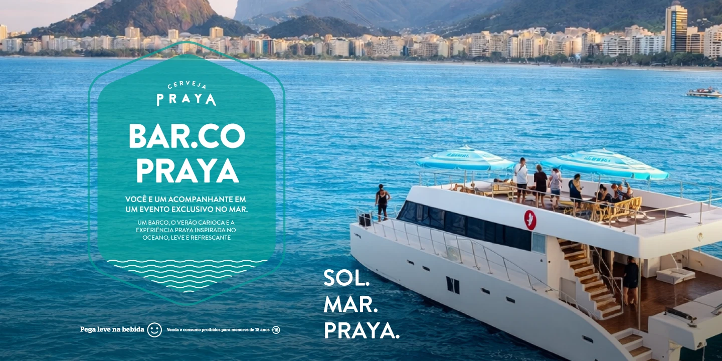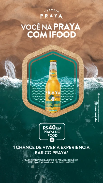 Compre agora R$40 em Praya no iFood e concorra a momentos especiais no BAR.CO PRAYA. Um barco, o verão carioca e a experiência Praya inspirada no oceano, leve e refrescante. Tá esperando o que?